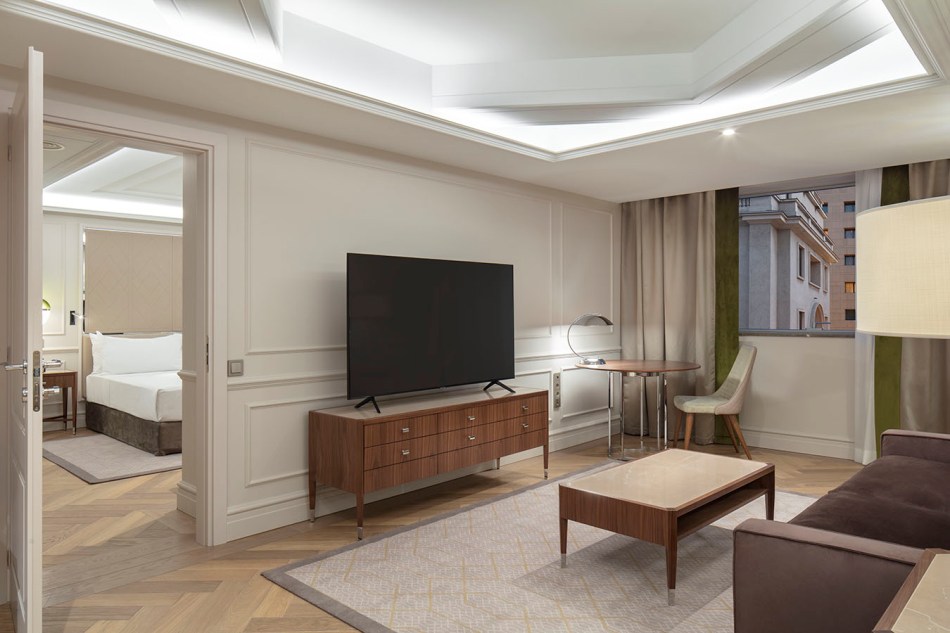 Relax in our new modern rooms with engineered wood flooring and intelligent airflow command panel, located on levels 2-5, featuring one king bed, convenient business amenities, dining table with double use as a workstation with a designer ergonomic chair. You can browse online or catch up with work using WiFi and sit back in the chaise longue corner.