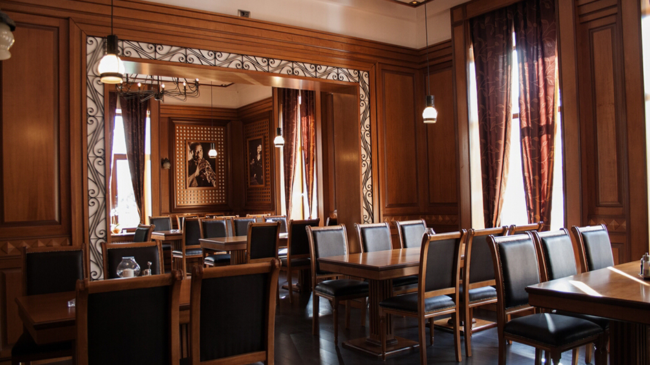 Înăuntrul restaurantului nu ştii către ce să îţi arunci privirea mai întâi: către pianul din colţ, către elegantele canapele şi scaune, către modelele de fier forjat, care încadrează spaţiul ca o invitaţie cu colţuri dantelate, sau către fotografiile copleşitoare ce încarcă Epoca de atmosfera anilor ‘30, sursa principală de inspiraţie în amenajarea restaurantului.Fiecare element este la locul său şi are un rol în peisaj. Nu-i de mirare, căci designul încăperilor a fost gândit de o echipă de şapte arhitecţi din Cluj, oraş unde există cea mai bună şcoală de design interior din ţară. În completarea spaţiului vine şi muzica, aceasta variind între clasic, jazz şi ambiental.